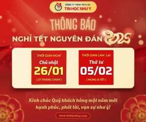 Công ty TNHH TM&DV Tin Học Như Ý thông báo lịch nghỉ Tết Nguyên Đán Ất Tỵ 2025 Công ty TNHH TM&DV Tin Học Như Ý xin trân trọng thông báo đến toàn thể Quý đối tác, Quý khách hàng ...