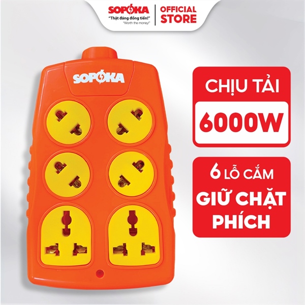 Ổ cắm diện Sopoka 6000W 6 lỗ chéo không dây 30A 6S-6000W+C